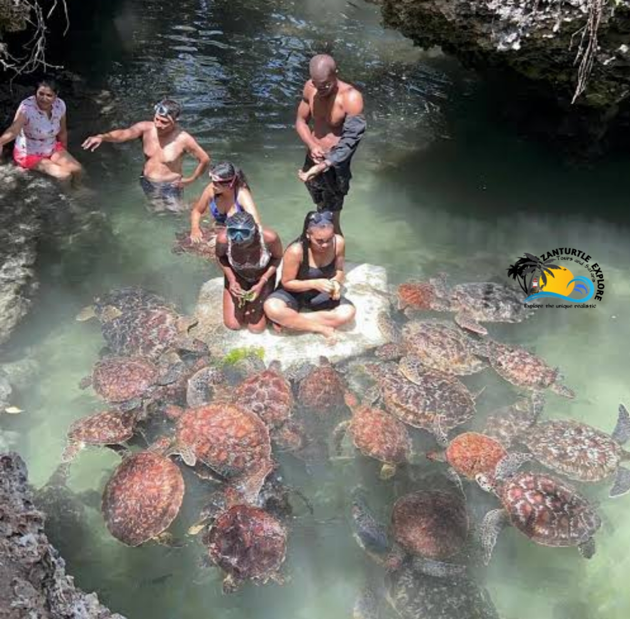 You will have the opportunity to swim or snorkel alongside the turtles, watching them move gracefully in their habitat. Guests are also invited to feed the turtles fresh seaweed, a moment that creates memorable interactions and photo opportunities. Throughout the visit, your guide will explain the story of the conservation project, how injured or stranded turtles are rescued and cared for, and why this work is important for marine preservation in Zanzibar.